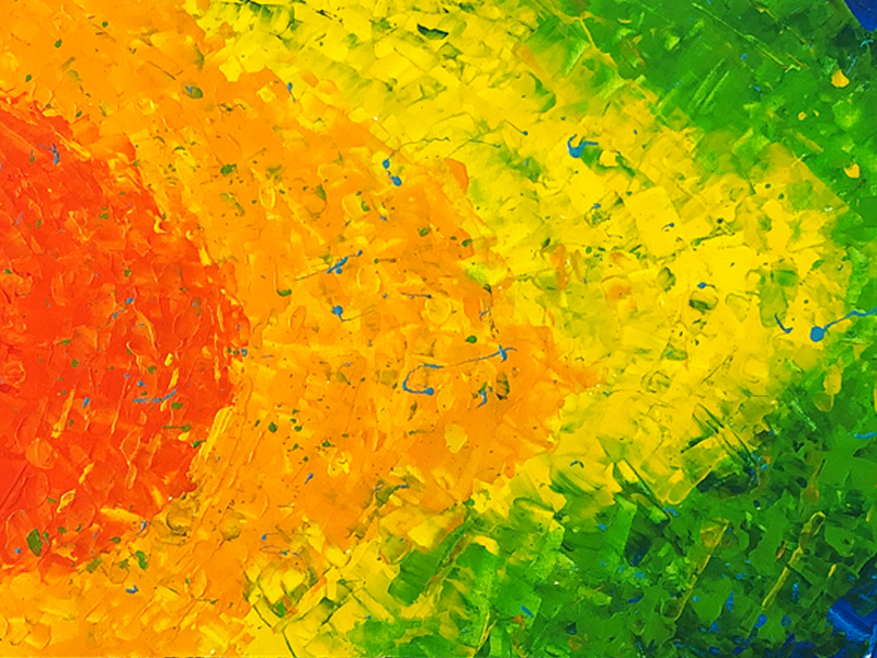 Large striking colour combination with acrylic paint on three canvases