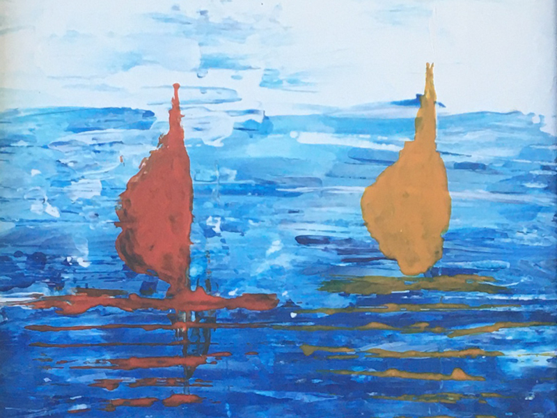Abstract painting of sailboats