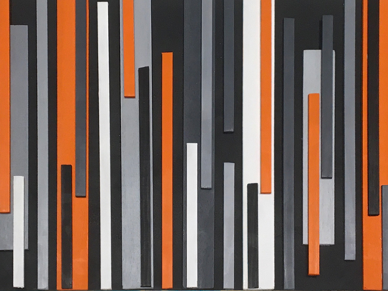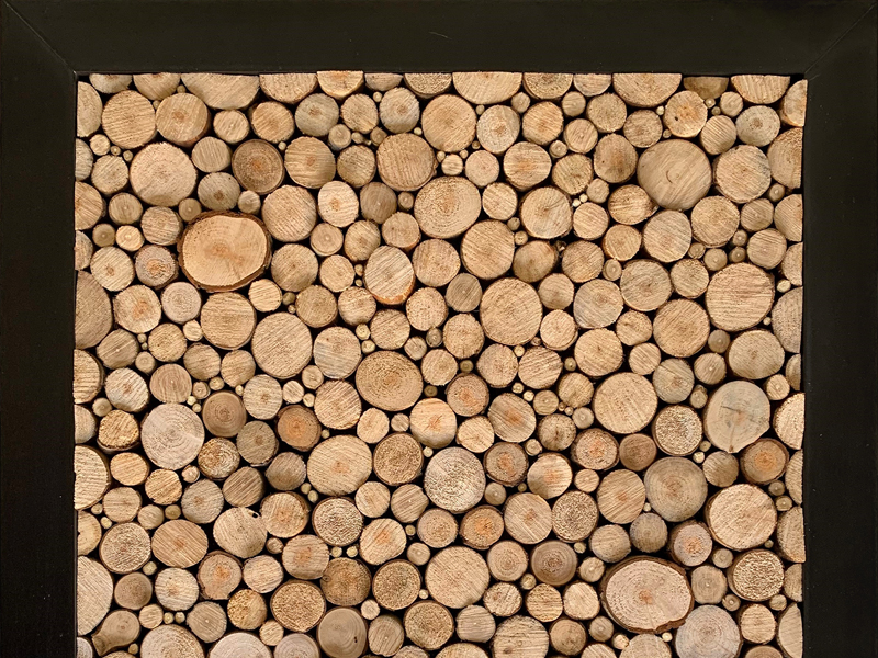 Small and large wooden slats on a rectangular black painted back panel